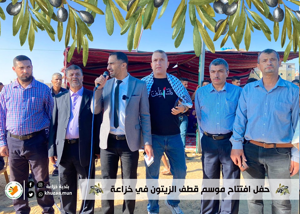 وفي بداية الحفل رحب رئيس بلدية خزاعة م. عمر أبو ريدة بالحضور ، مؤكداً على ضرورة الإحتفال في بداية هذا الموسم، موسم الزيتون لما له من أهمية لإحياء تراثنا الفلسطيني .