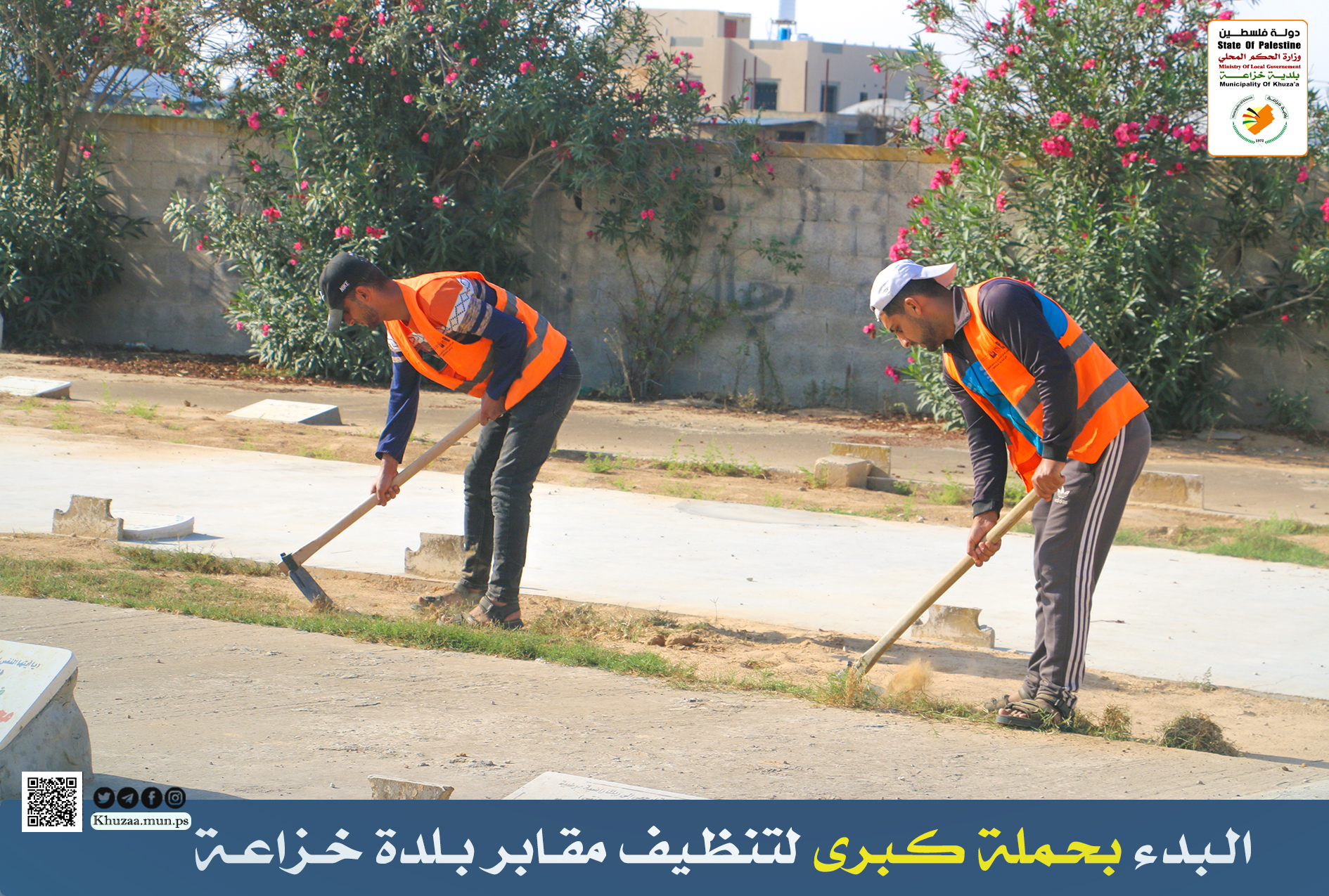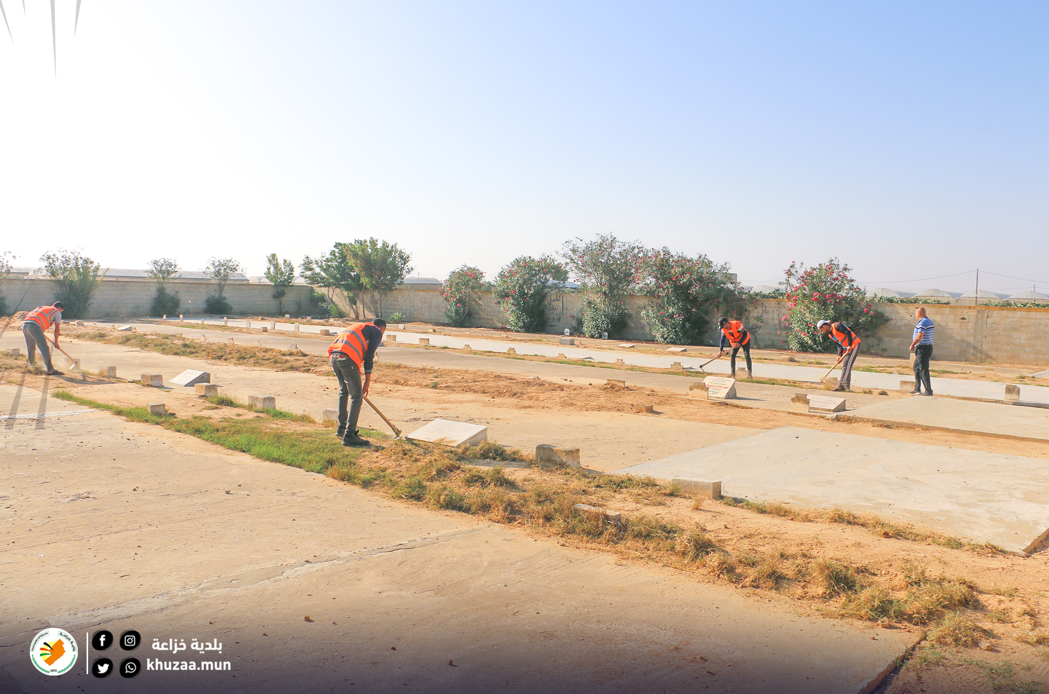 #صور|| شرعت طواقم بلدية خزاعة صباح اليوم بحملة كبرى لتتظيف مقابر بلدة خزاعة ، وذلك ضمن خطتها لزيادة الاهتمام بالمقابر الواقعة ضمن نفوذ البلدية ، ويتخلل الحملة تنظيف المقابر بشكل دوري بالإضافة الى إزالة الأشواك والحشائش الضارة ، وتقليم الأشجار الموجودة بداخل المقابر .