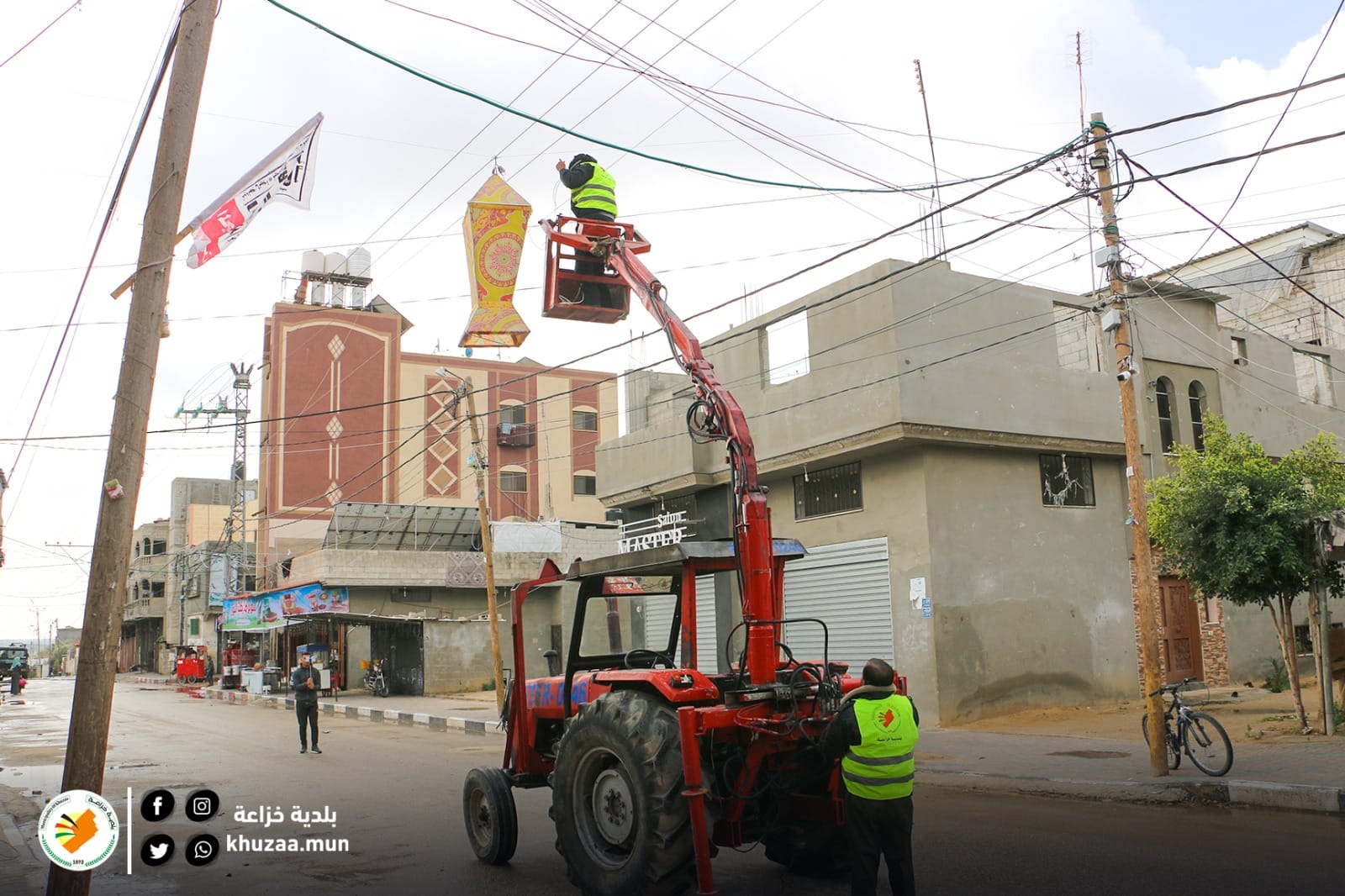 || شرعت طواقم بلدية خزاعة صباح اليوم بأعمال تركيب فوانيس إنارة وتزيين لشوارع مختلفة في بلدة خزاعة ، حيث تأتي هذه الأعمال ضمن خطة البلدية لإستقبال شهر رمضان المبارك .