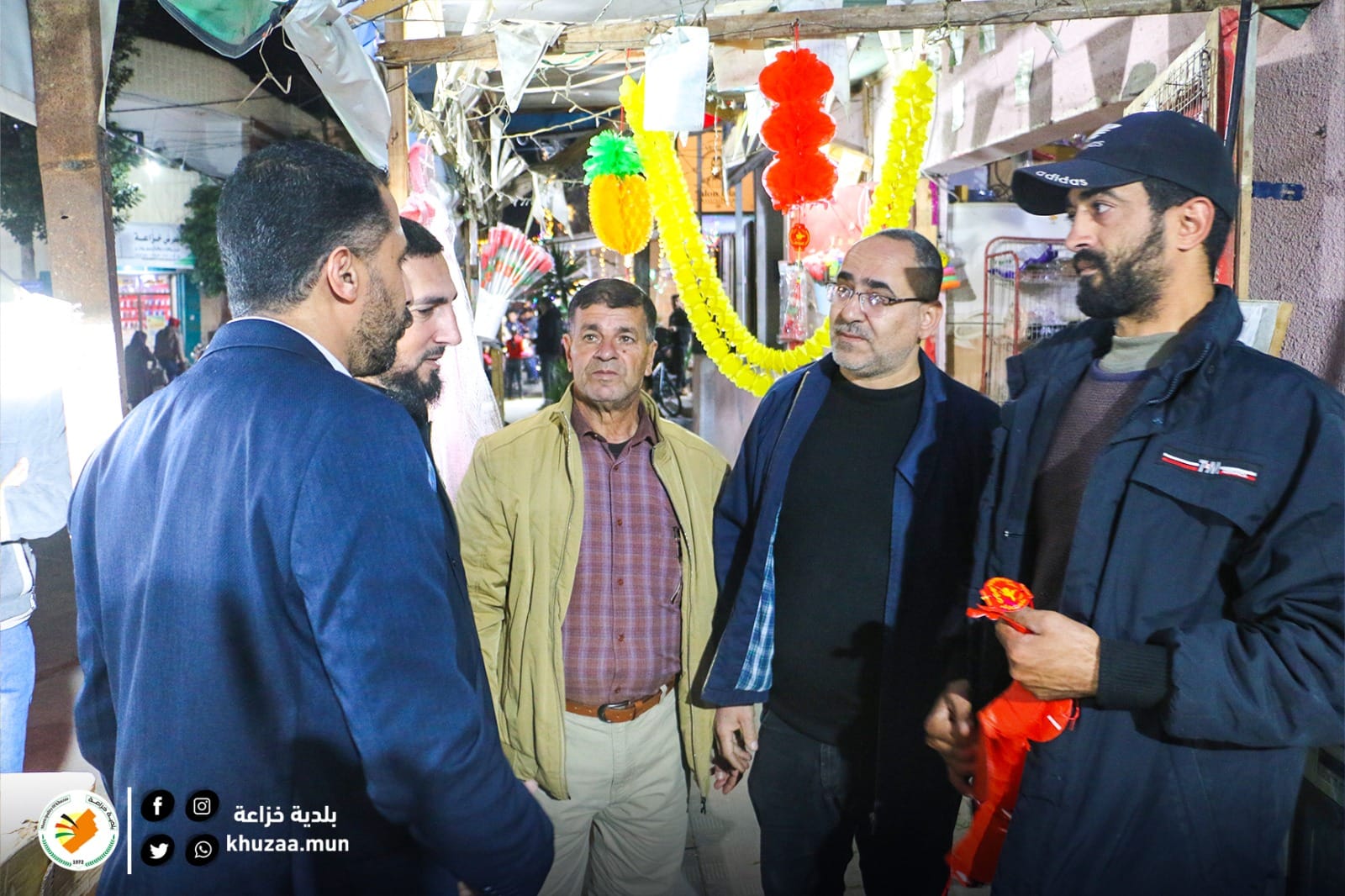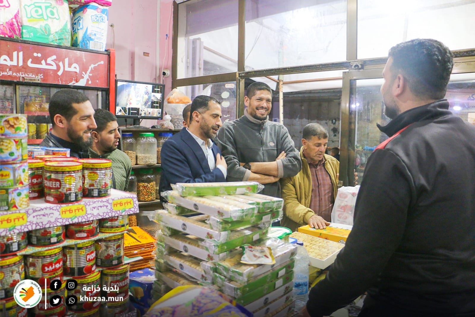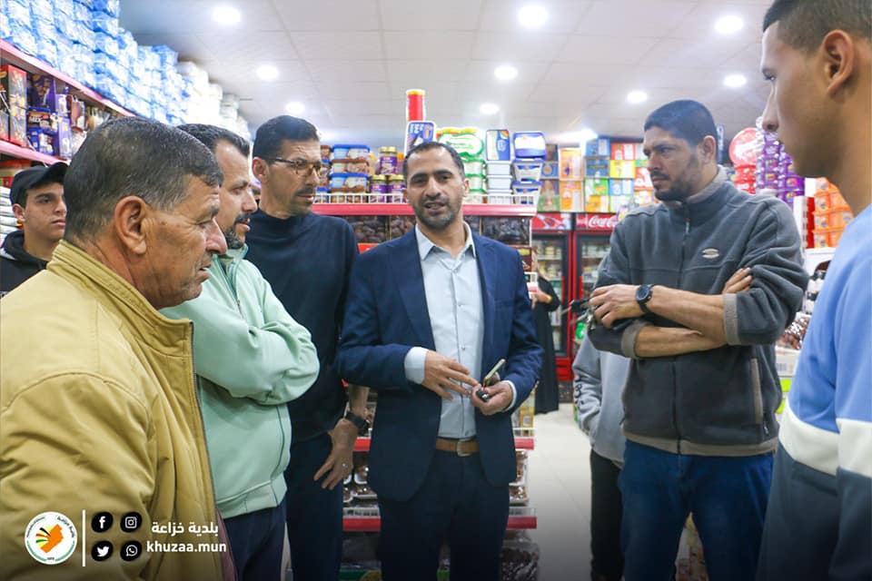 - نظمت بلدية خزاعة مساء أمس جولة تفقدية على أصحاب المحلات في بلدة خزاعة ، بالتعاون مع شرطة البلديات ؛ من أجل تنظيم الحركة التجارية لضمان حرية الحركة والتسوق للمواطنين ضمن استعداداتها لإستقبال شهر رمضان المبارك.